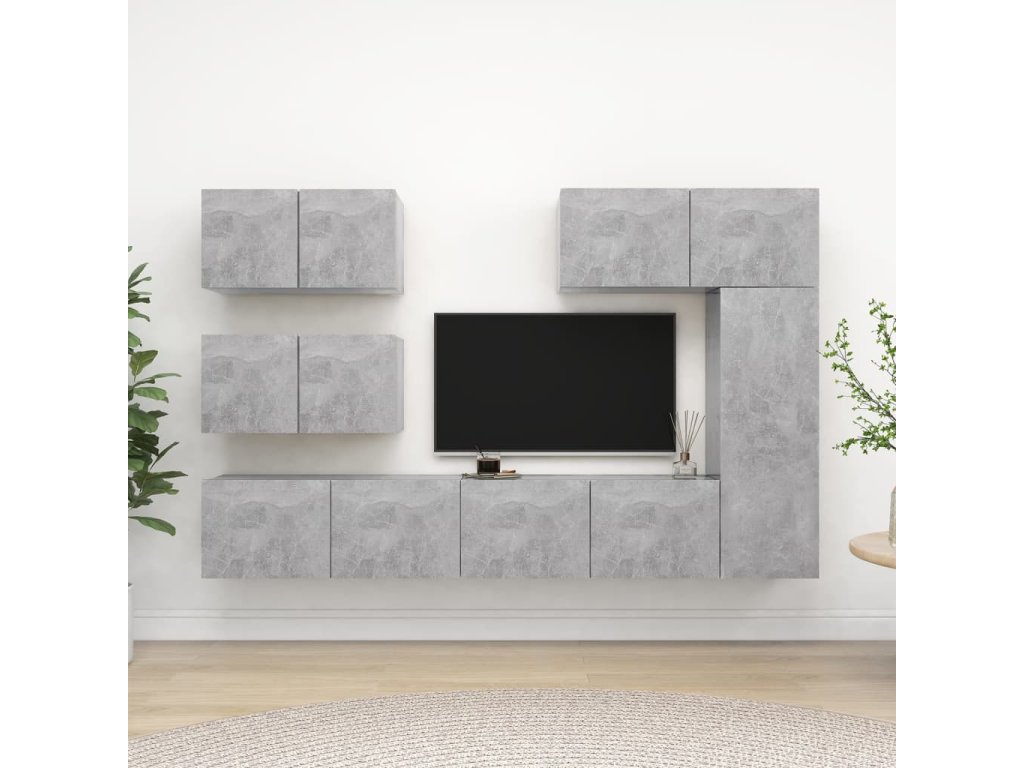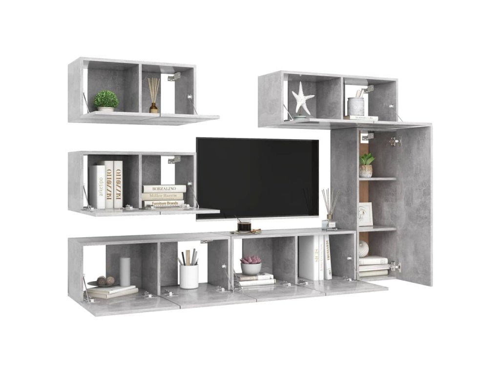 6dílný set TV skříněk betonově šedý kompozitní dřevo 3079135