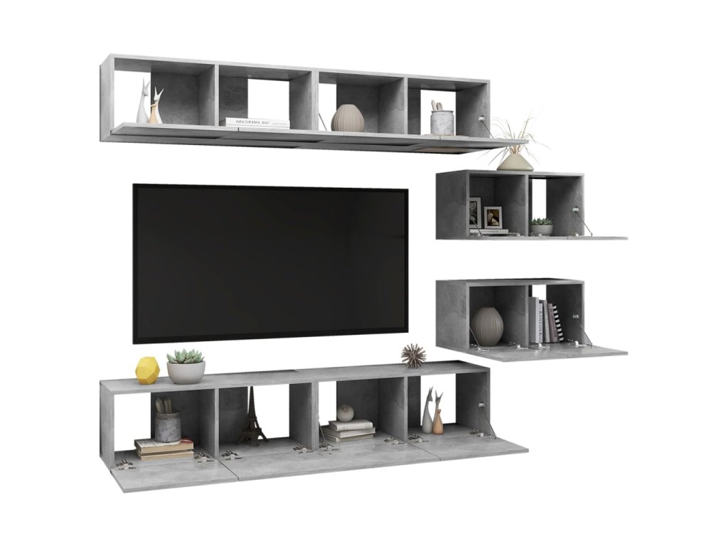 6dílný set TV skříněk betonově šedý kompozitní dřevo 3079146