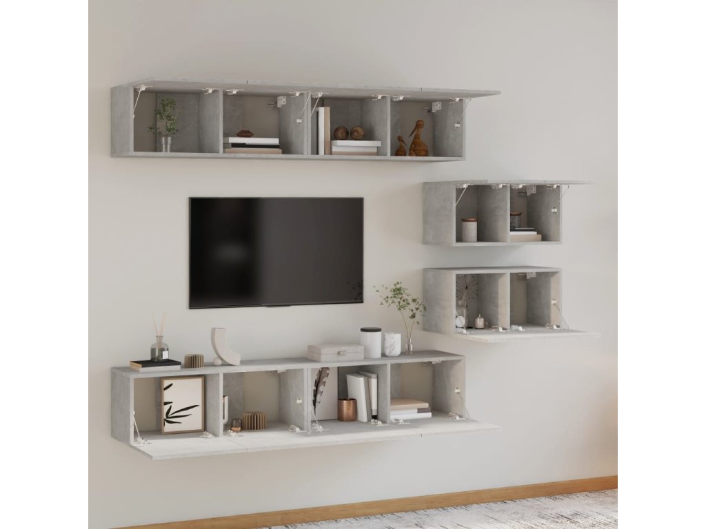 6dílný set TV skříněk betonově šedý kompozitní dřevo 3114601