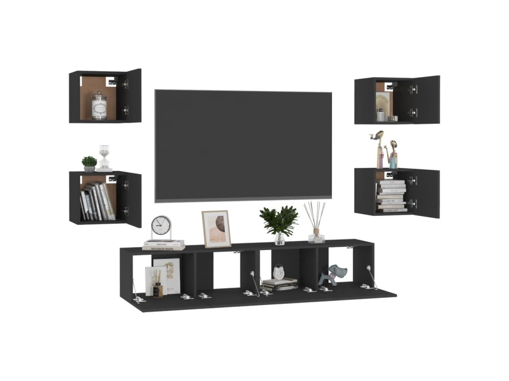 6dílný set TV skříněk černý kompozitní dřevo 3078767