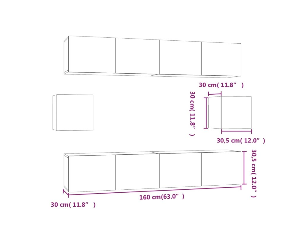 - 4x TV skříňka: 80 x 30 x 30 cm (Š x H x V)