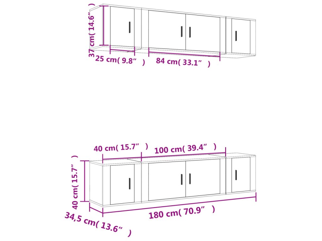 - 4x TV skříňka: 40 x 34,5 x 40 cm (D x Š x V)