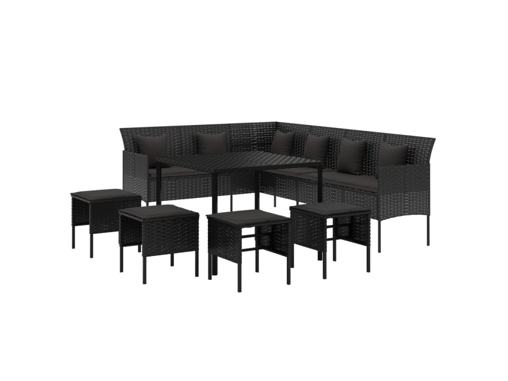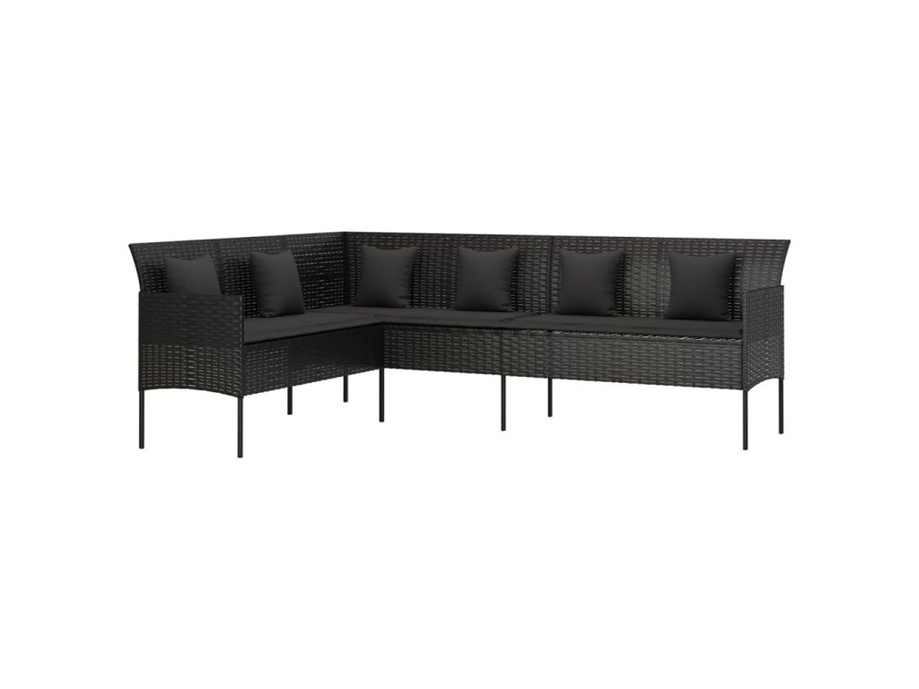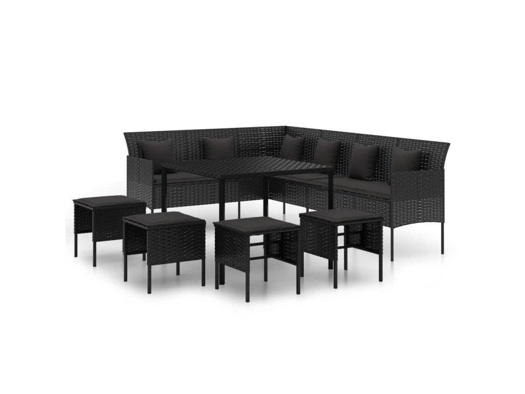6dílný zahradní jídelní set s poduškami černý polyratan 3186650