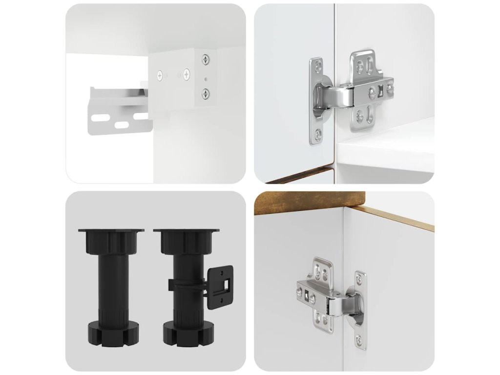 - Nastavitelné nožičky: Spodní skříňky mají nastavitelné nožičky, jejichž výšku lze nastavit tak, aby vyhovovaly uspořádání vaší kuchyně.