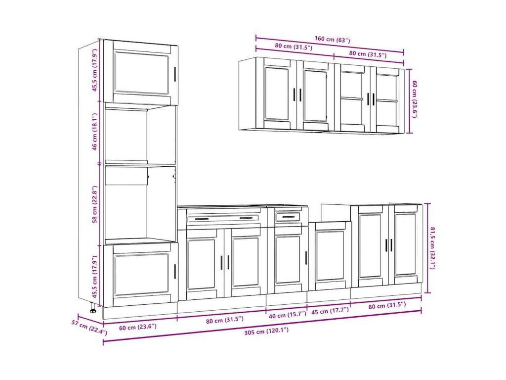 - 1 x Kuchyňská skříňka: 60 x 57 x 207 cm (Š x H x V)