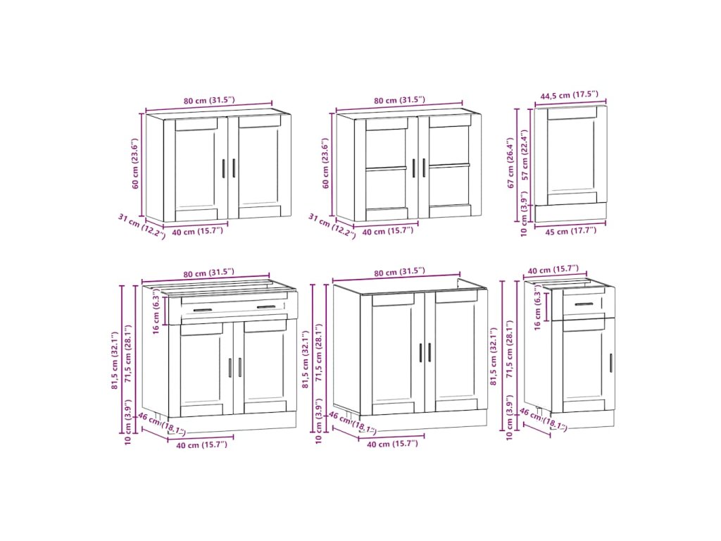 - Dostatek úložného prostoru: Sada kuchyňských skříněk má mnoho přihrádek a nabízí dostatek prostoru pro uložení misek, talířů, hrnců a dalších kuchyňských spotřebičů.