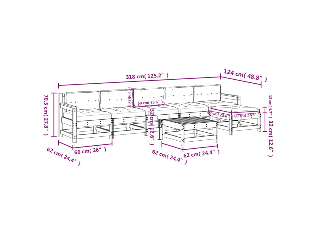 7dílná zahradní sedací souprava a podušky impregnovaná borovice 3185975