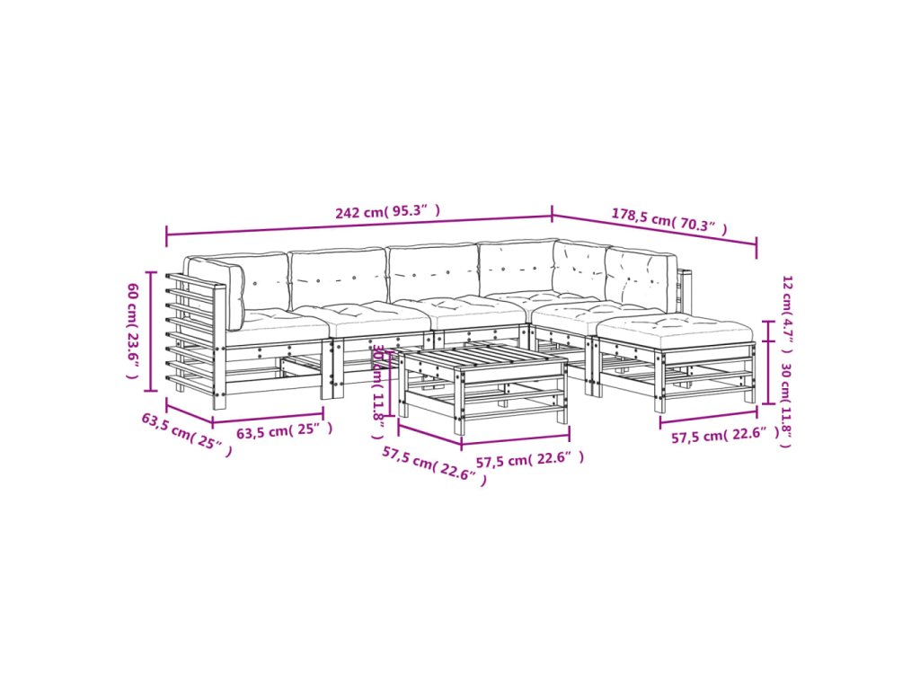 7dílná zahradní sedací souprava a podušky impregnovaná borovice 3185982