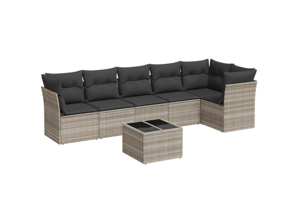 7dílná zahradní sedací souprava a podušky světle šedá polyratan 3217672