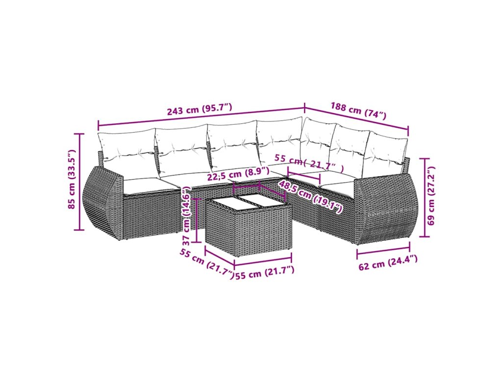 Tato zahradní sedací souprava je dokonalým doplňkem vaší zahrady, terasy nebo dvorku a poskytne vám pohodlné a příjemné místo, kde si můžete povídat s rodinou a přáteli nebo jen tak odpočívat a užívat si pobyt venku.