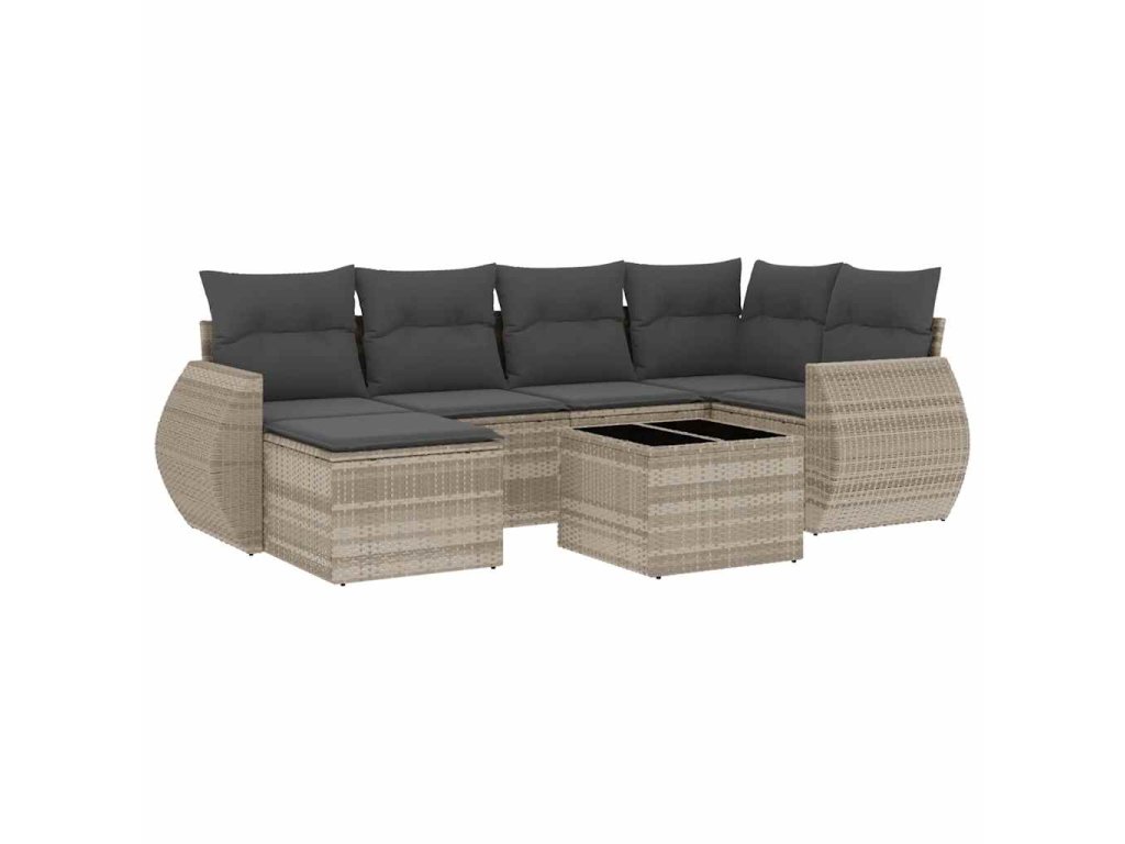 7dílná zahradní sedací souprava a podušky světle šedá polyratan 3221671