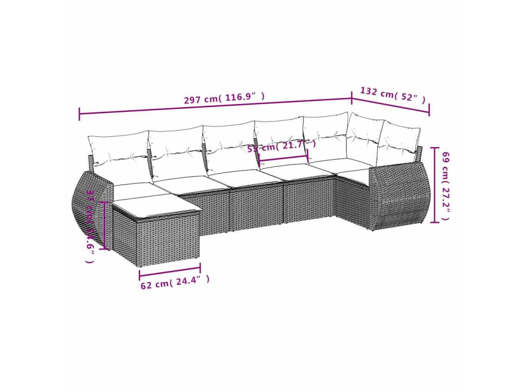 7dílná zahradní sedací souprava a podušky světle šedá polyratan 3221681