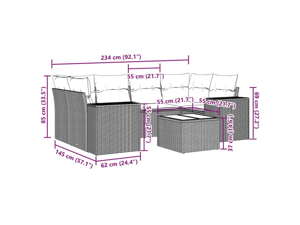 Tato zahradní sedací souprava je dokonalým doplňkem vaší zahrady, terasy nebo dvorku a poskytne vám pohodlné a příjemné místo, kde si můžete povídat s rodinou a přáteli nebo jen tak odpočívat a užívat si pobyt venku.