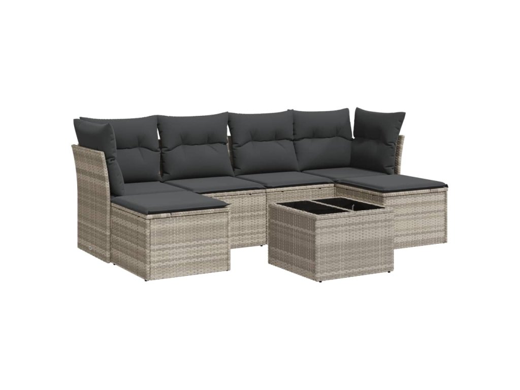 7dílná zahradní sedací souprava a podušky světle šedá polyratan 3249861