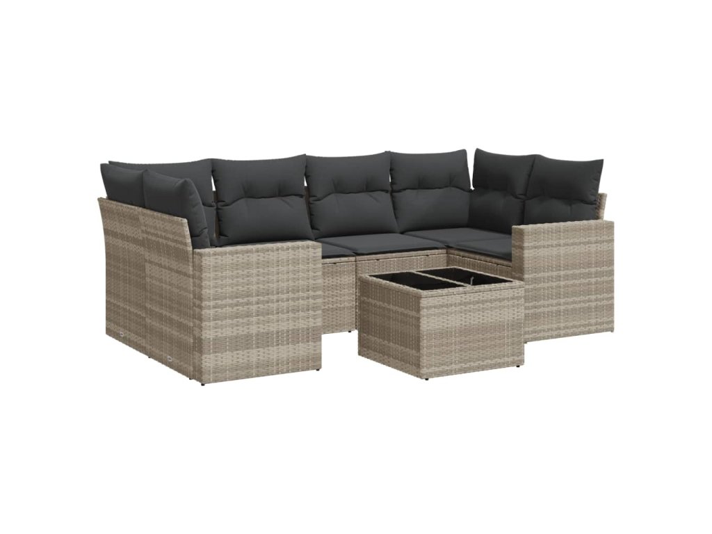 7dílná zahradní sedací souprava a podušky světle šedá polyratan 3251059