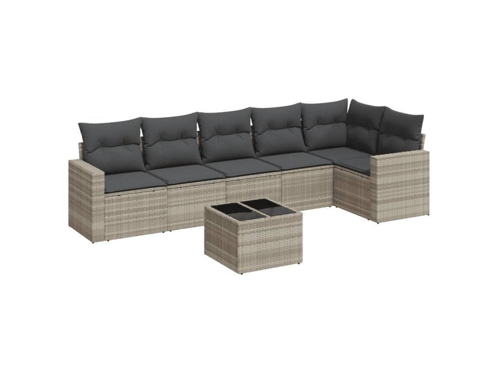 7dílná zahradní sedací souprava a podušky světle šedá polyratan 3251339