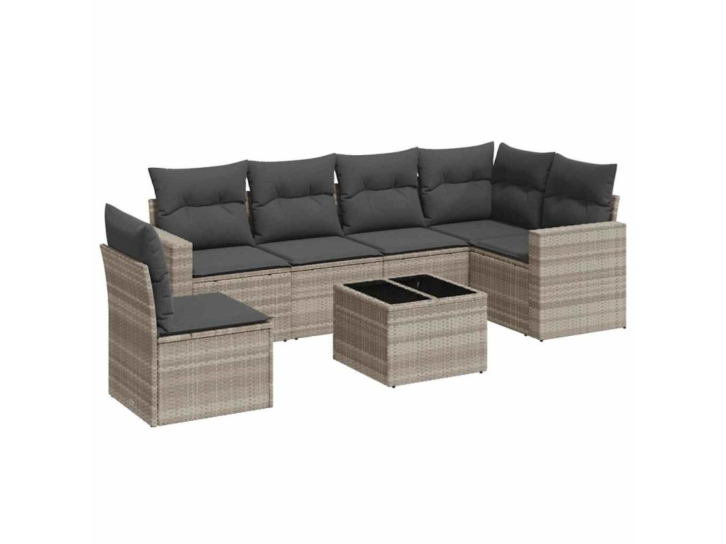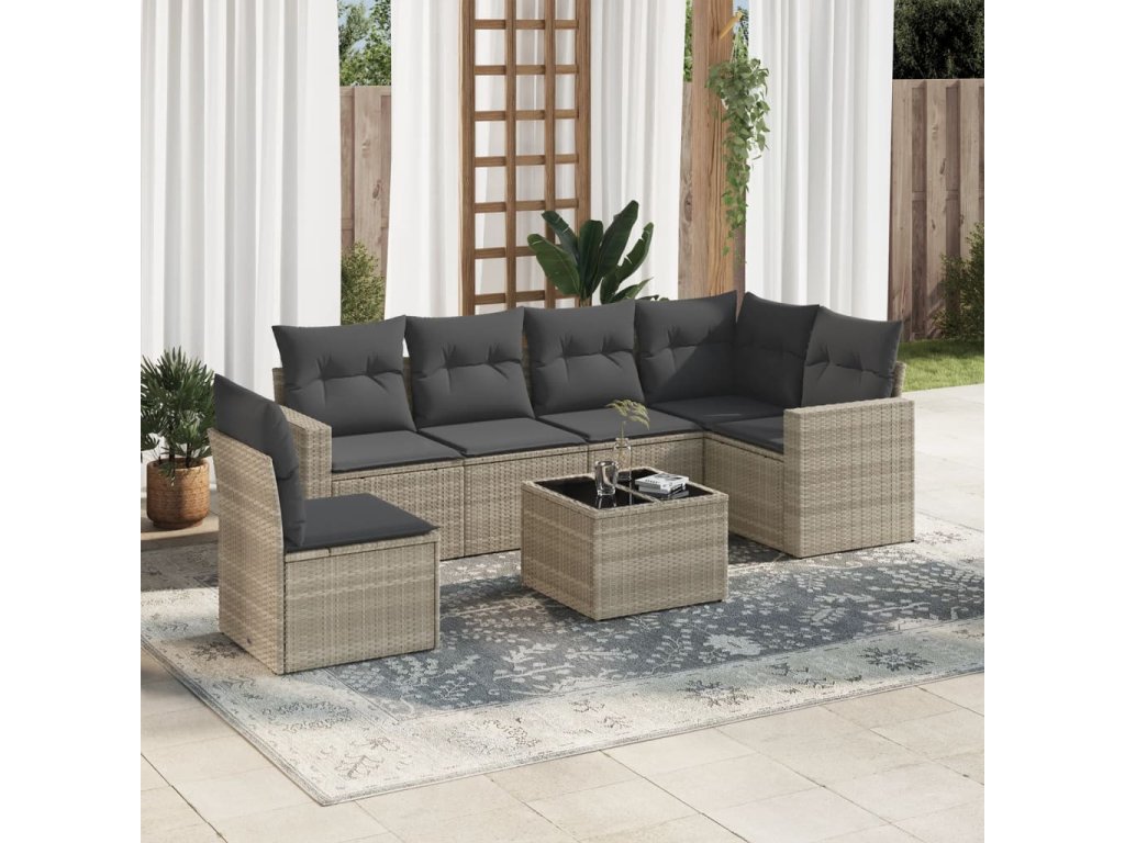 7dílná zahradní sedací souprava a podušky světle šedá polyratan 3251379