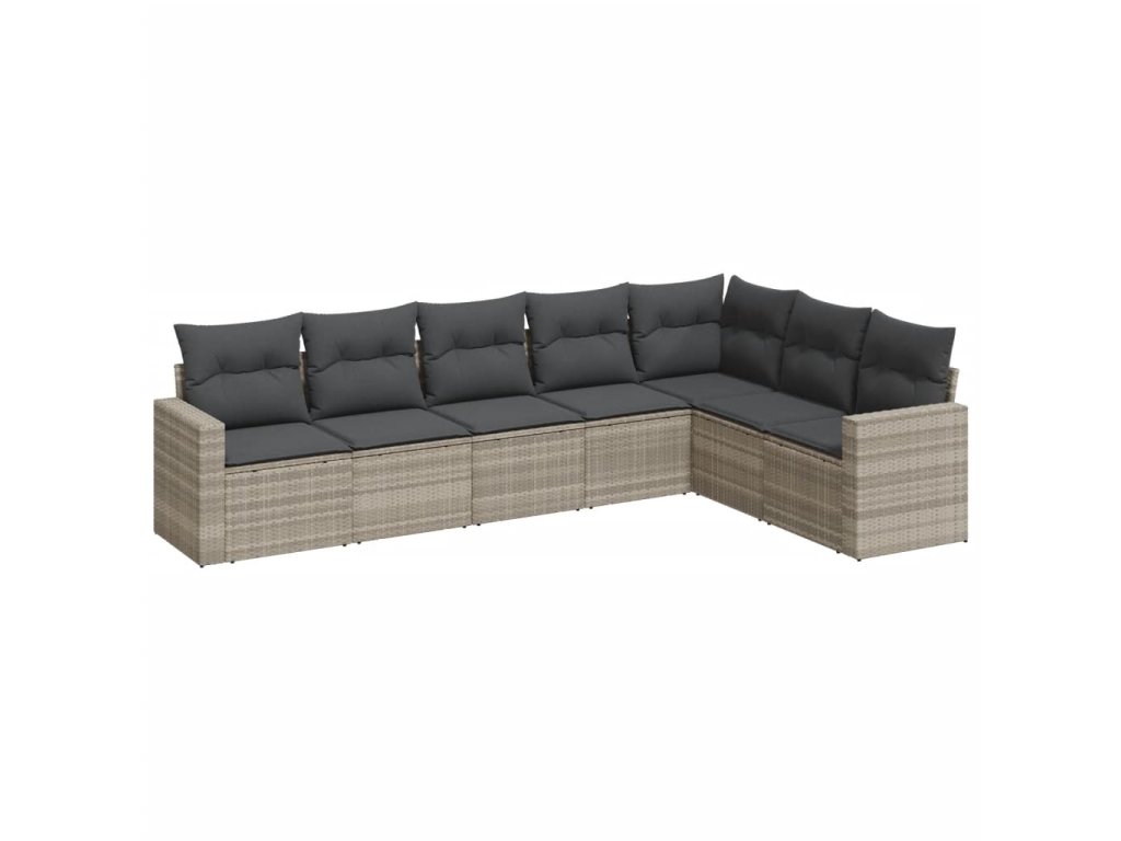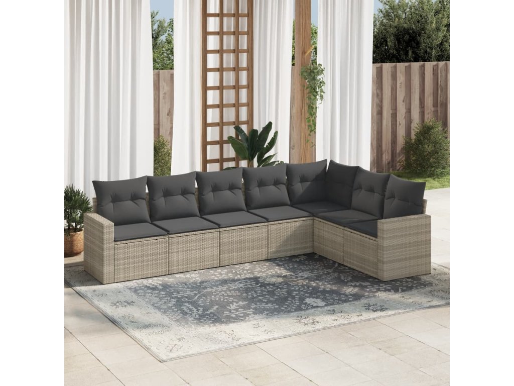 7dílná zahradní sedací souprava a podušky světle šedá polyratan 3251389