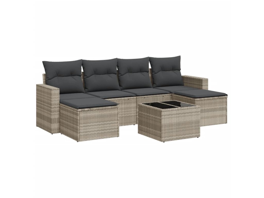 7dílná zahradní sedací souprava a podušky světle šedá polyratan 3251669