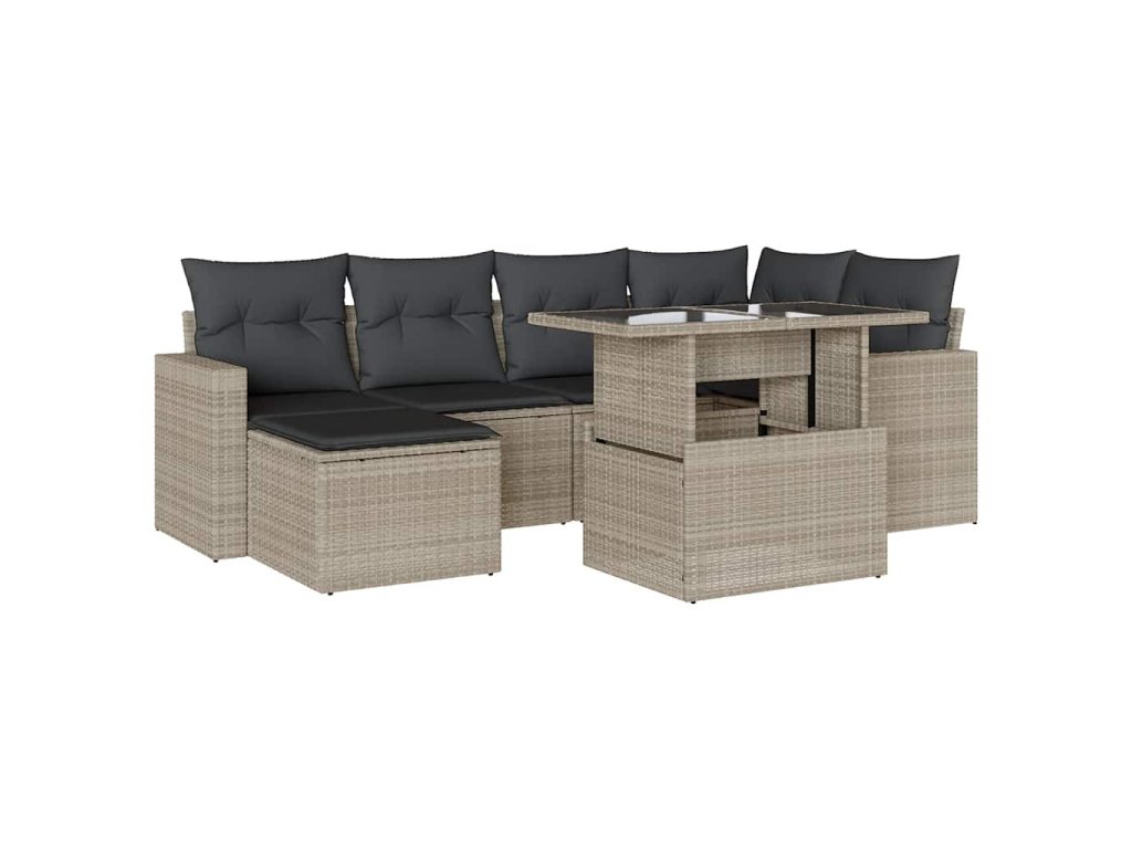 7dílná zahradní sedací souprava a podušky světle šedá polyratan 3267422