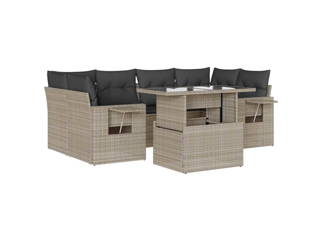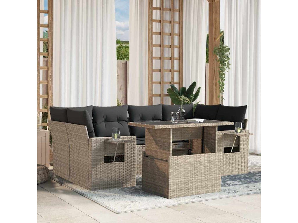 7dílná zahradní sedací souprava a podušky světle šedá polyratan 3267762