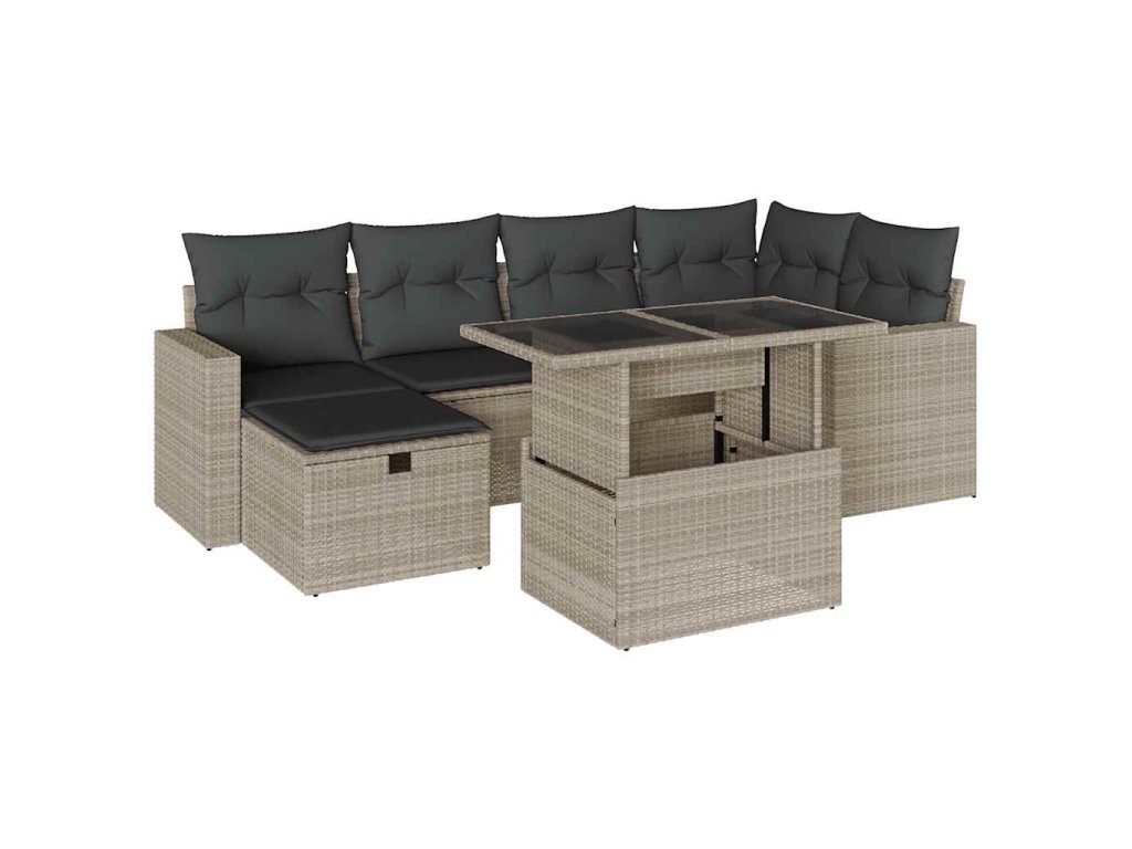 7dílná zahradní sedací souprava a podušky světle šedá polyratan 3274822