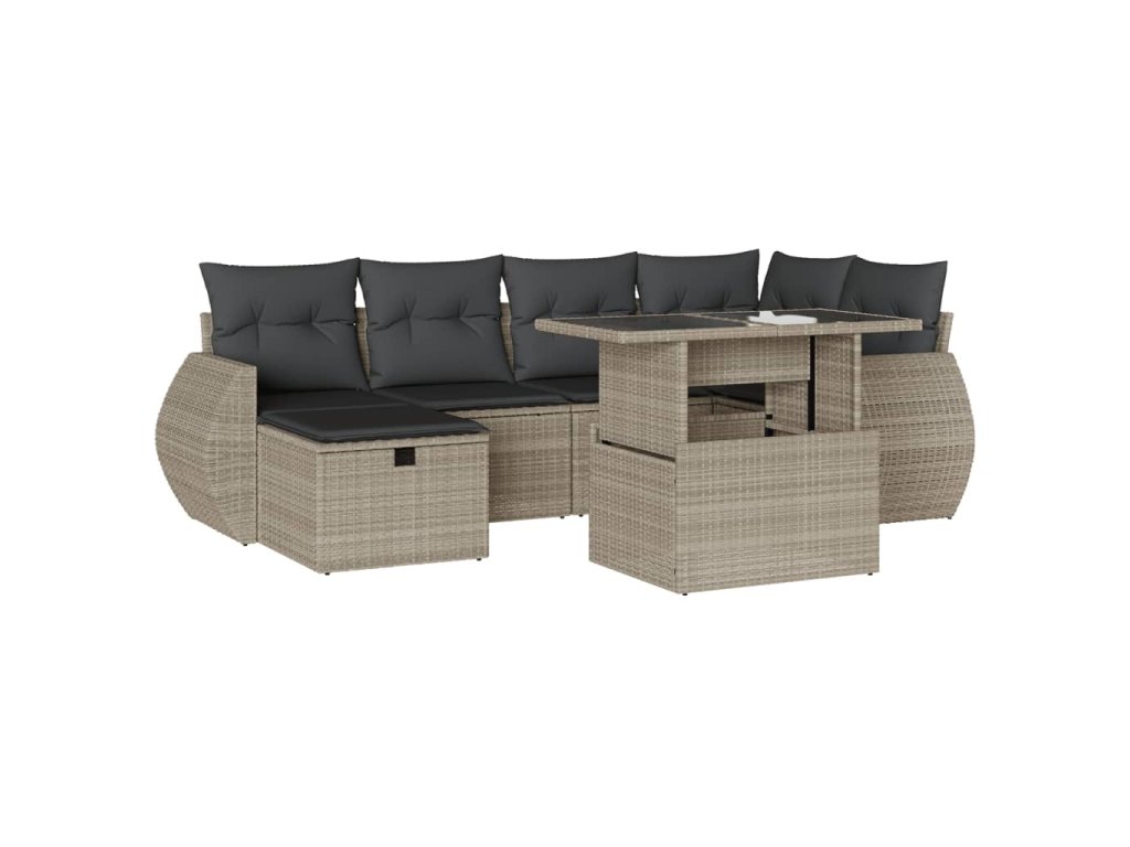 7dílná zahradní sedací souprava a podušky světle šedá polyratan 3275142