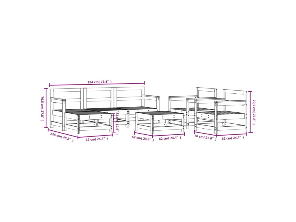 - Rozměry středové pohovky: 62 x 62 x 70,5 cm (Š x H x V)
