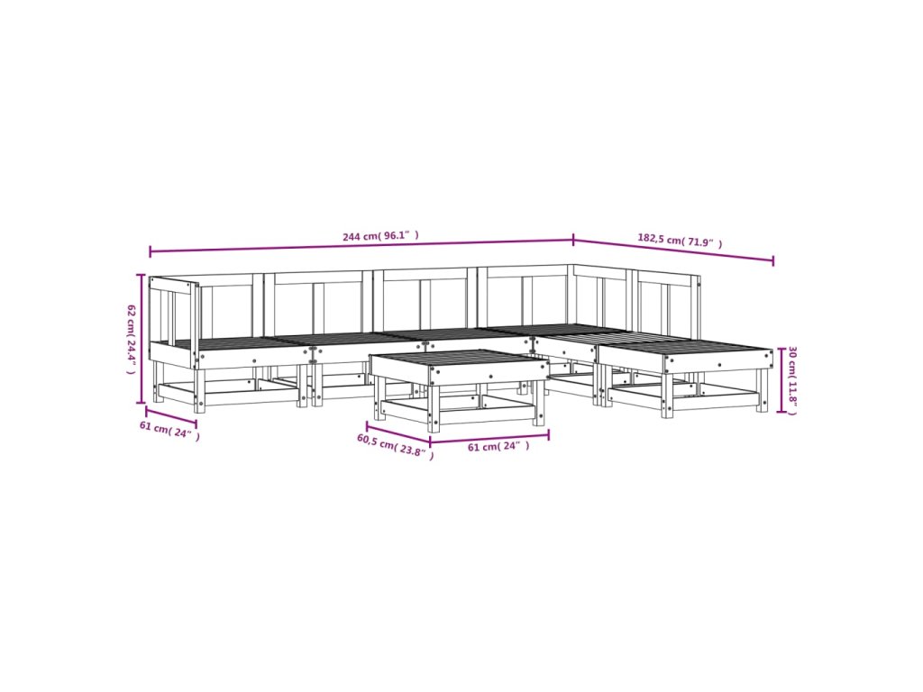 - Rozměry středové pohovky: 61 x 60,5 x 62 cm (D x Š x V)