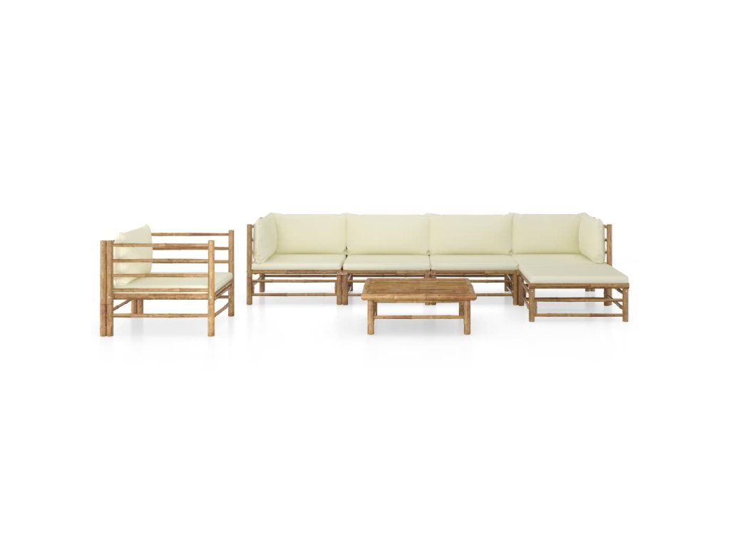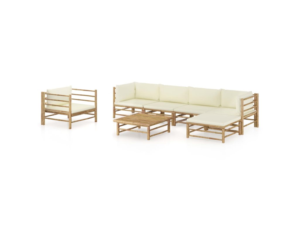7dílná zahradní sedací souprava + krémově bílé podušky bambus 3058199