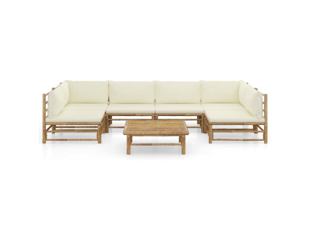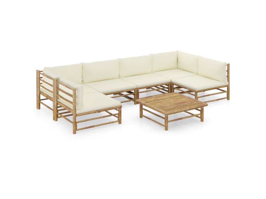 7dílná zahradní sedací souprava + krémově bílé podušky bambus 3058233