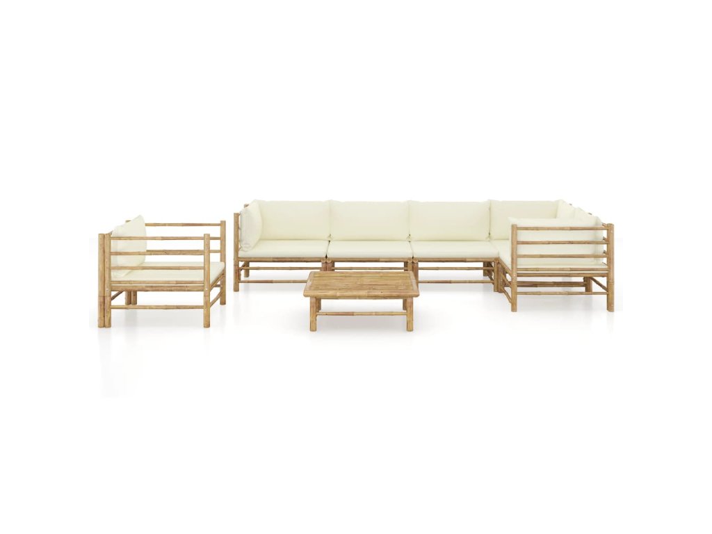 7dílná zahradní sedací souprava + krémově bílé podušky bambus 3058247