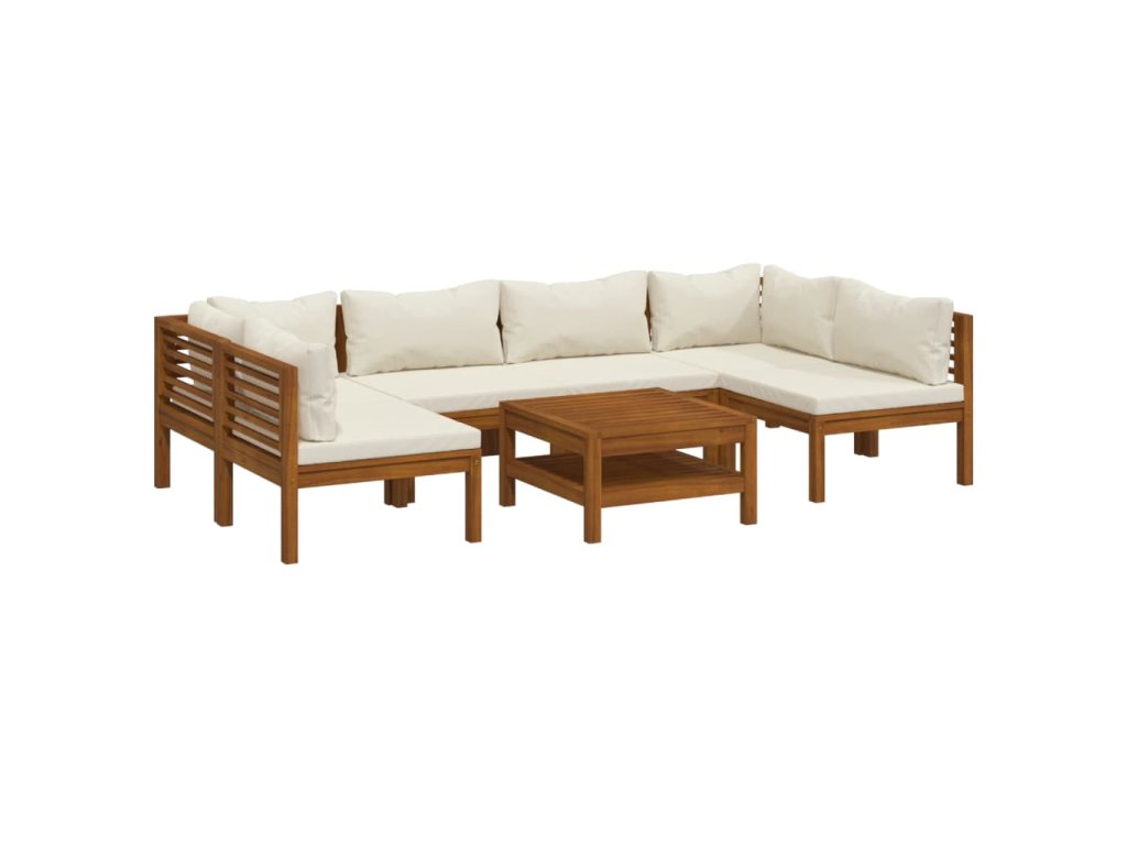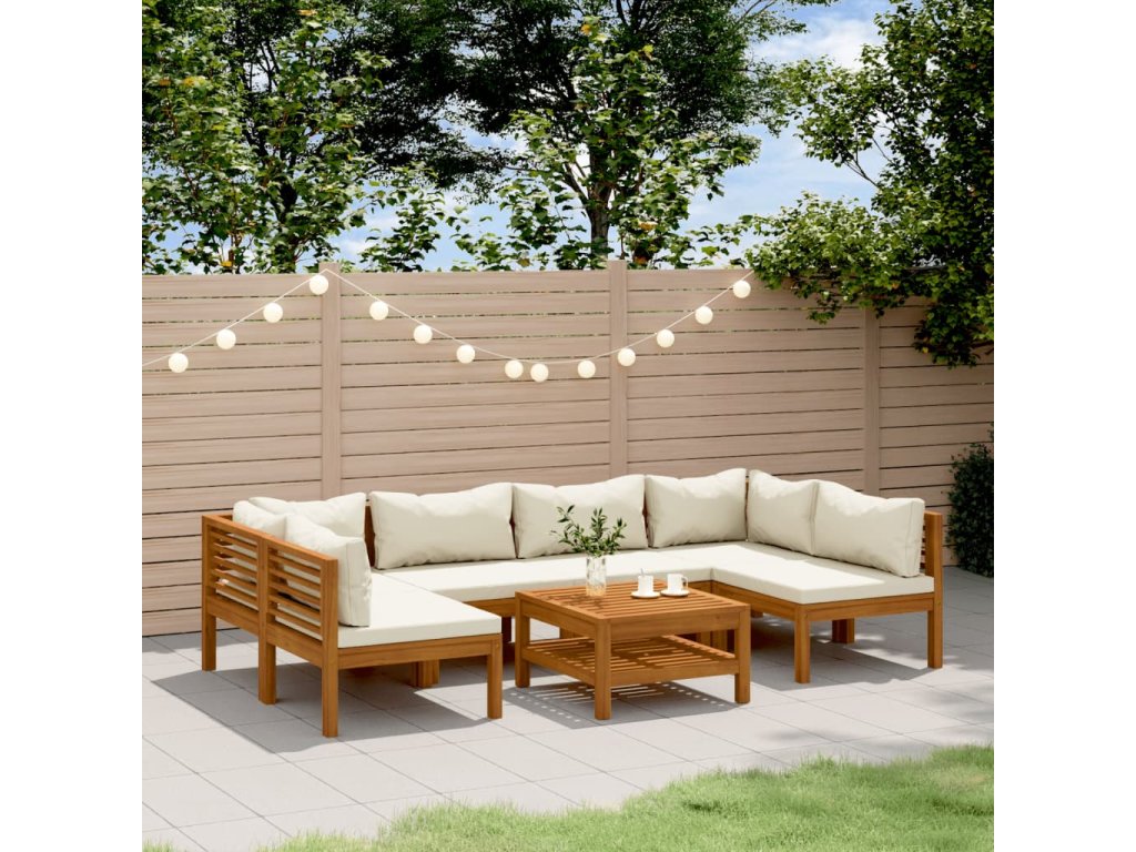 7dílná zahradní sedací souprava krémové podušky masivní akácie 3086947
