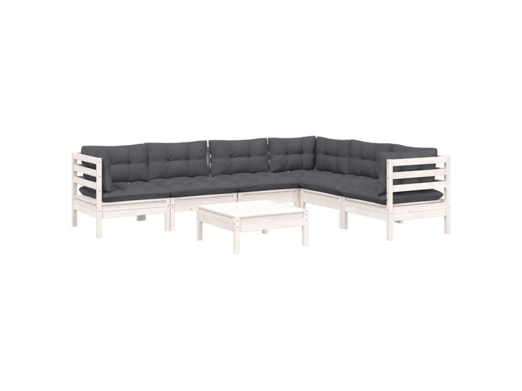7dílná zahradní sedací souprava podušky bílá masivní borovice 3096690