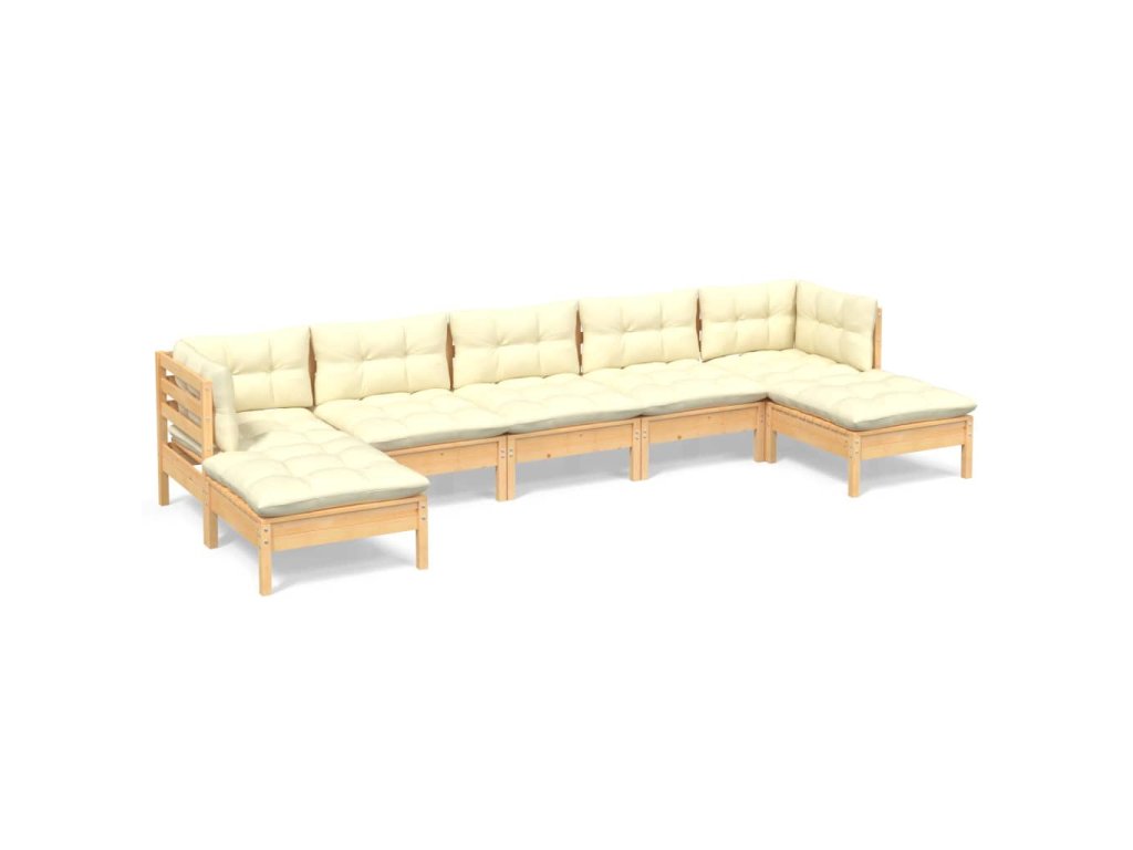 7dílná zahradní sedací souprava s krémovými poduškami borovice 3097091