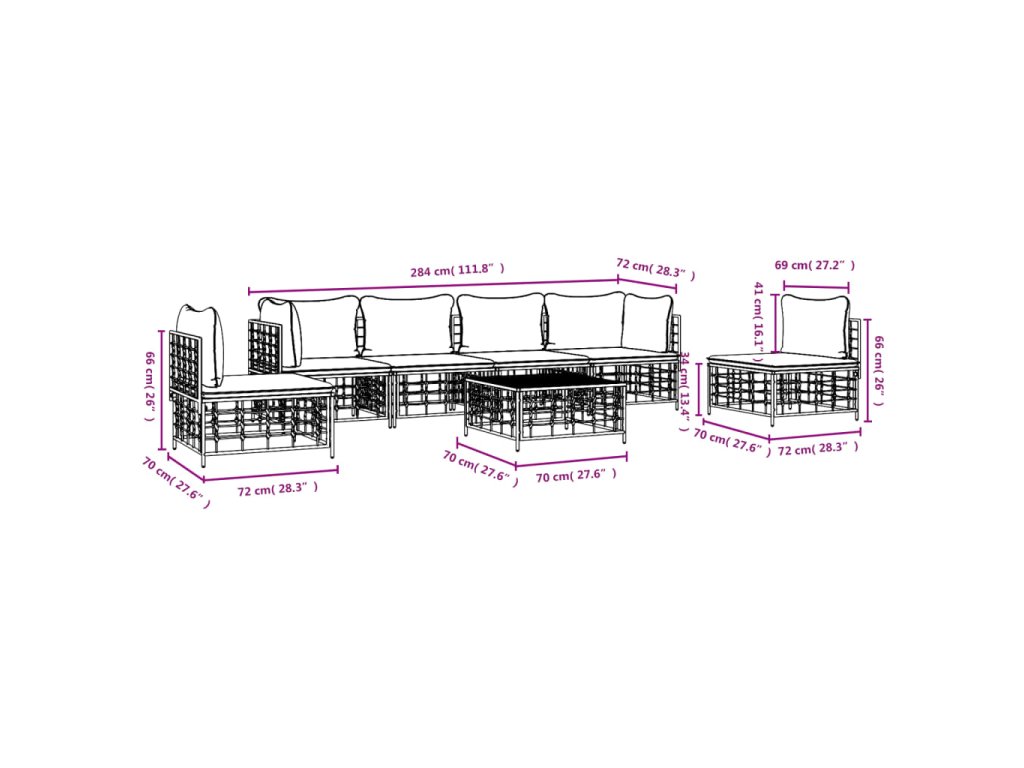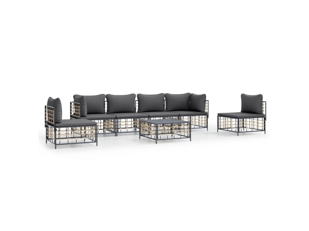 7dílná zahradní sedací souprava s poduškami antracit polyratan 3186723