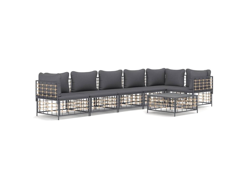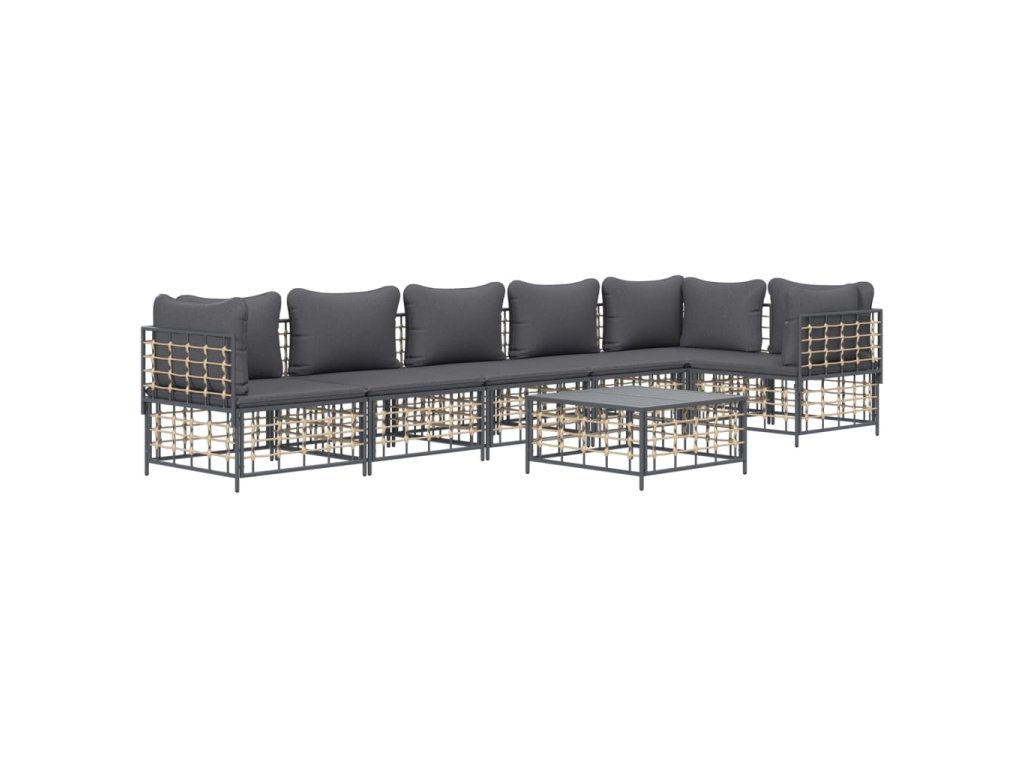 7dílná zahradní sedací souprava s poduškami antracit polyratan 3186757