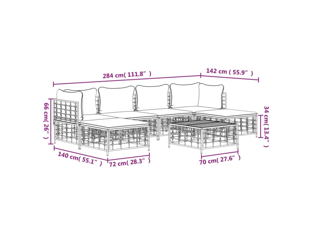 7dílná zahradní sedací souprava s poduškami antracit polyratan 3186781