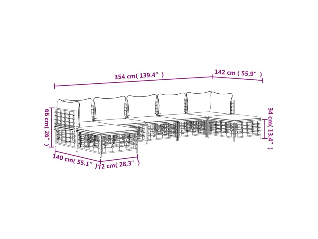 7dílná zahradní sedací souprava s poduškami antracit polyratan 3186783