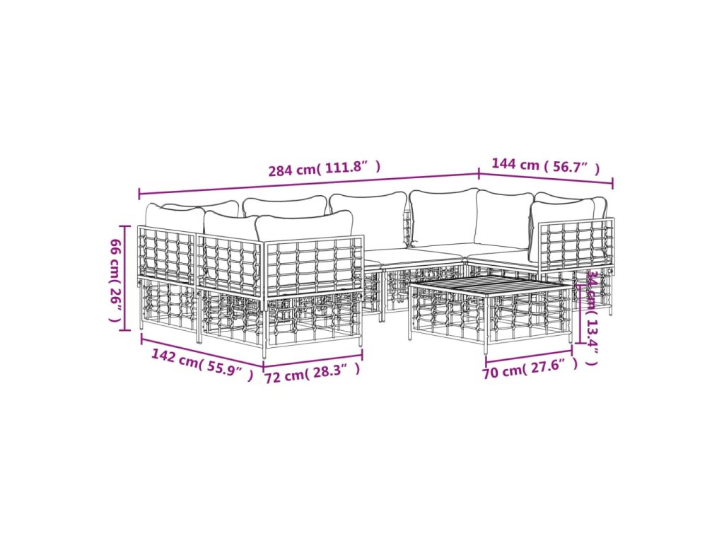 7dílná zahradní sedací souprava s poduškami antracit polyratan 3186798
