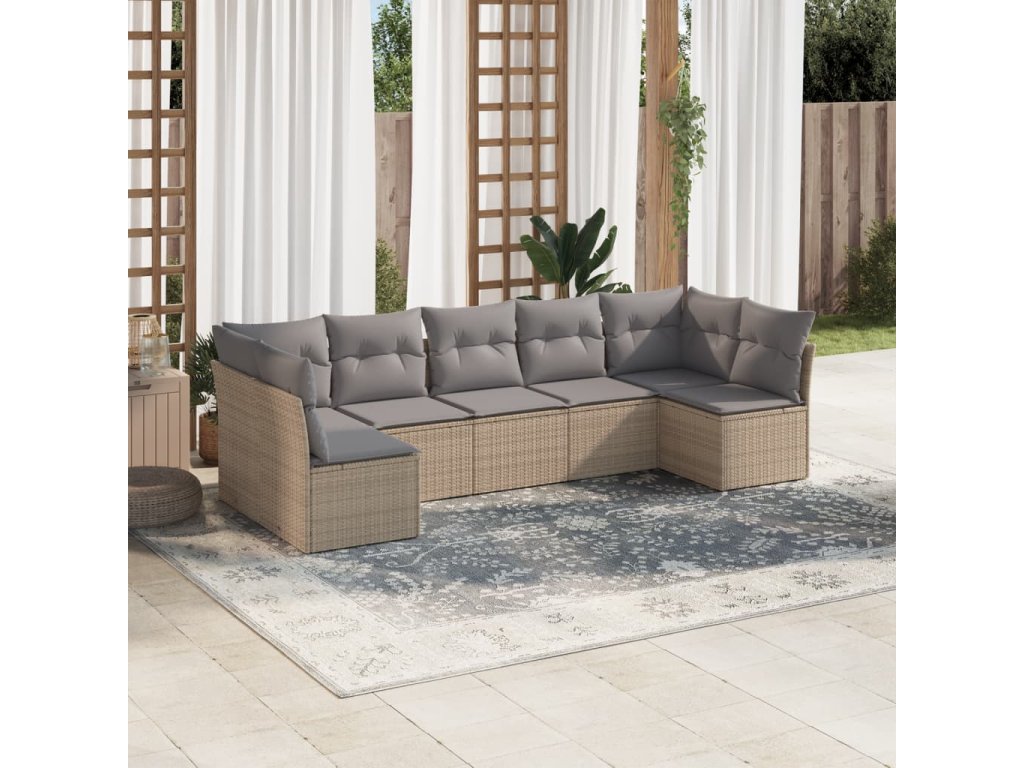 7dílná zahradní sedací souprava s poduškami béžová polyratan 3217429