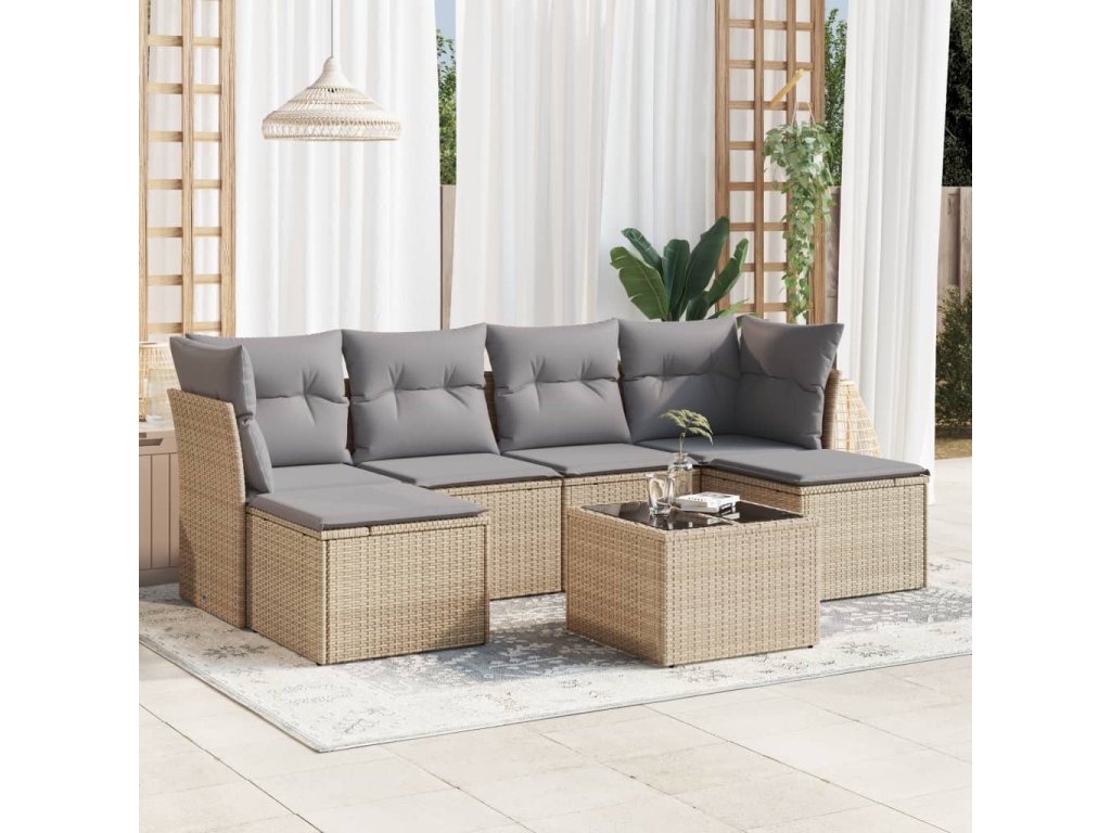 7dílná zahradní sedací souprava s poduškami béžová polyratan 3218019