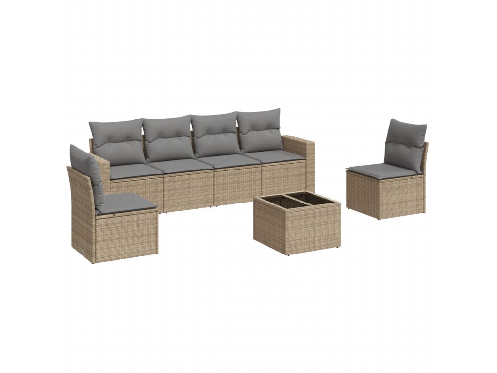 7dílná zahradní sedací souprava s poduškami béžová polyratan 3218809