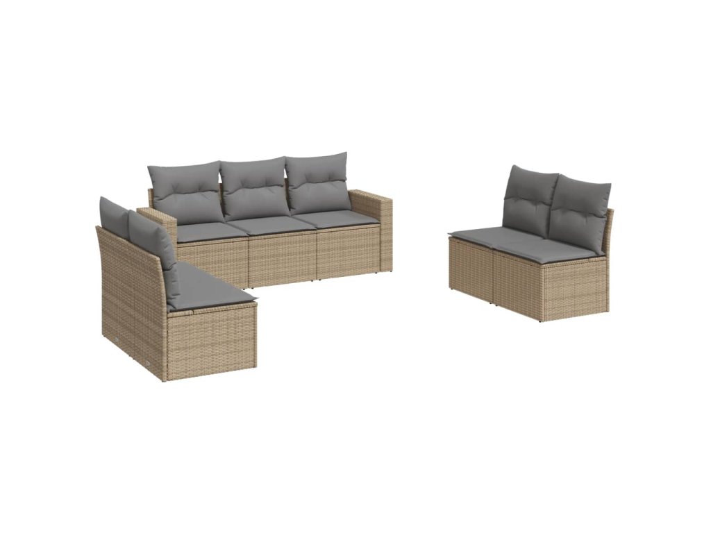 7dílná zahradní sedací souprava s poduškami béžová polyratan 3218819