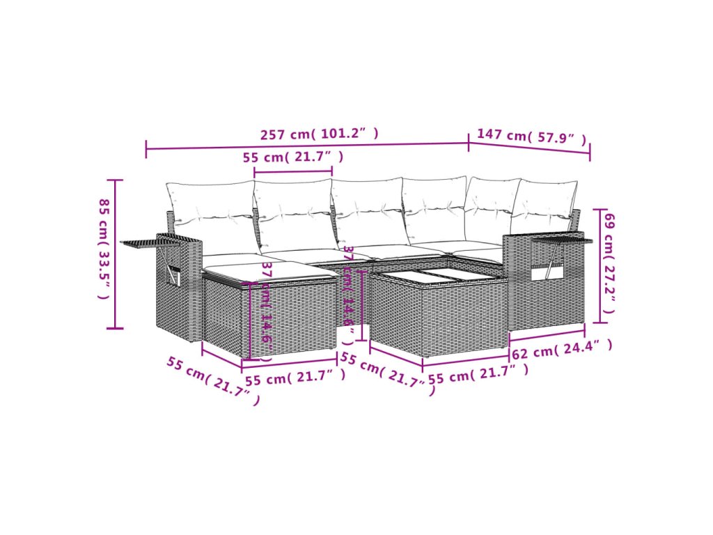 Tato zahradní sedací souprava je dokonalým doplňkem vaší zahrady, terasy nebo dvorku a poskytne vám pohodlné a příjemné místo, kde si můžete povídat s rodinou a přáteli nebo jen tak odpočívat a užívat si pobyt venku.