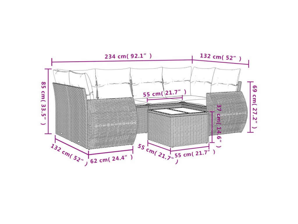 Tato zahradní sedací souprava je dokonalým doplňkem vaší zahrady, terasy nebo dvorku a poskytne vám pohodlné a příjemné místo, kde si můžete povídat s rodinou a přáteli nebo jen tak odpočívat a užívat si pobyt venku.