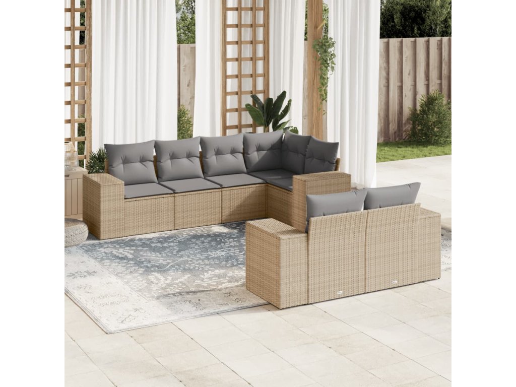 7dílná zahradní sedací souprava s poduškami béžová polyratan 3222808