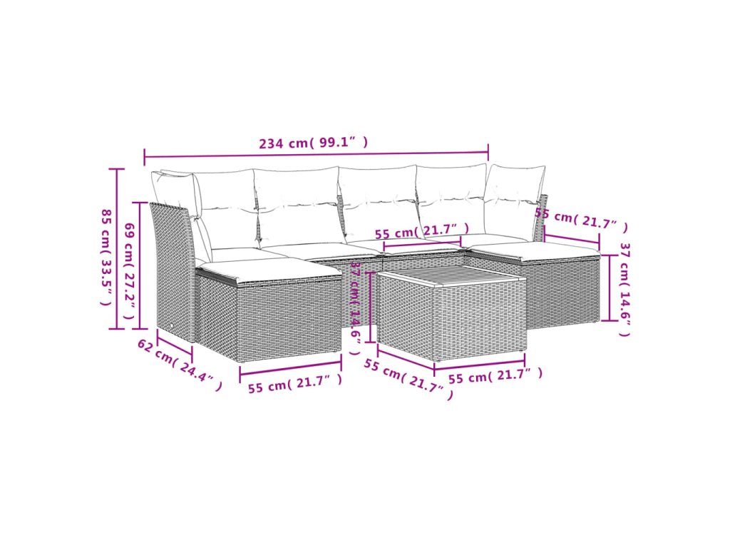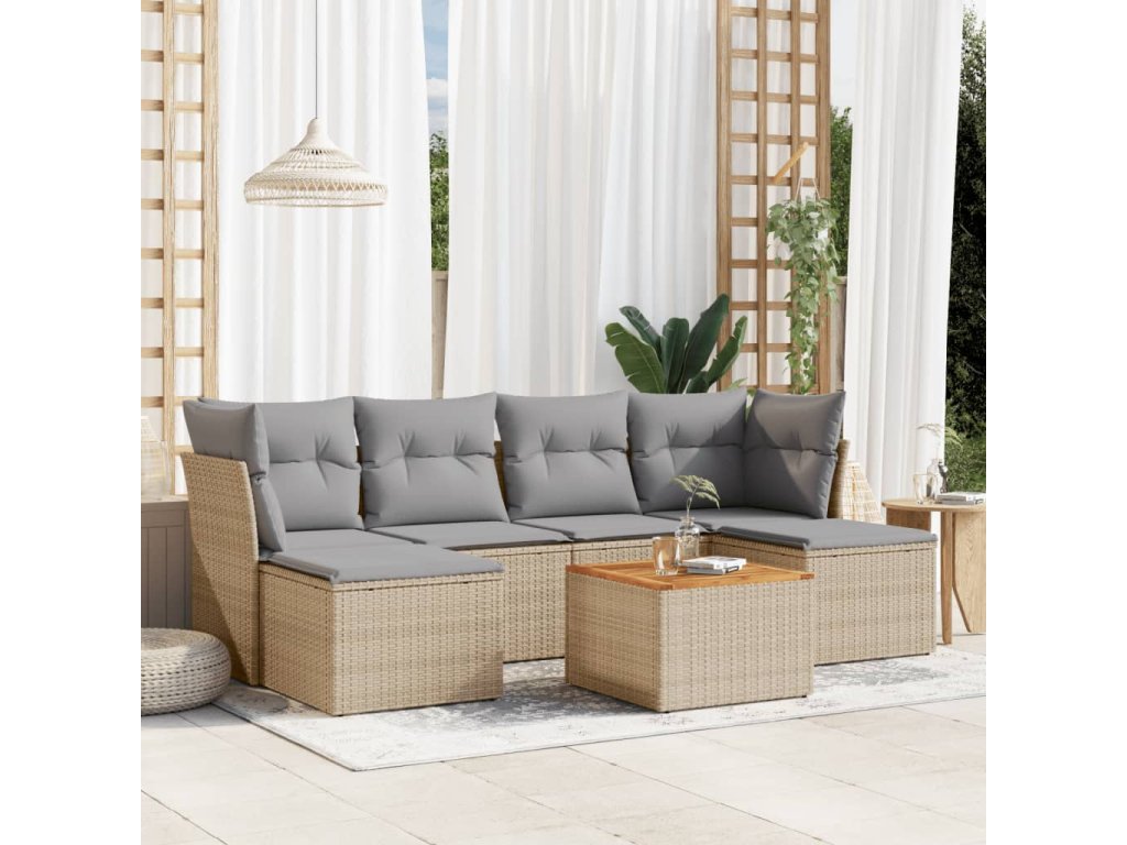 7dílná zahradní sedací souprava s poduškami béžová polyratan 3223770