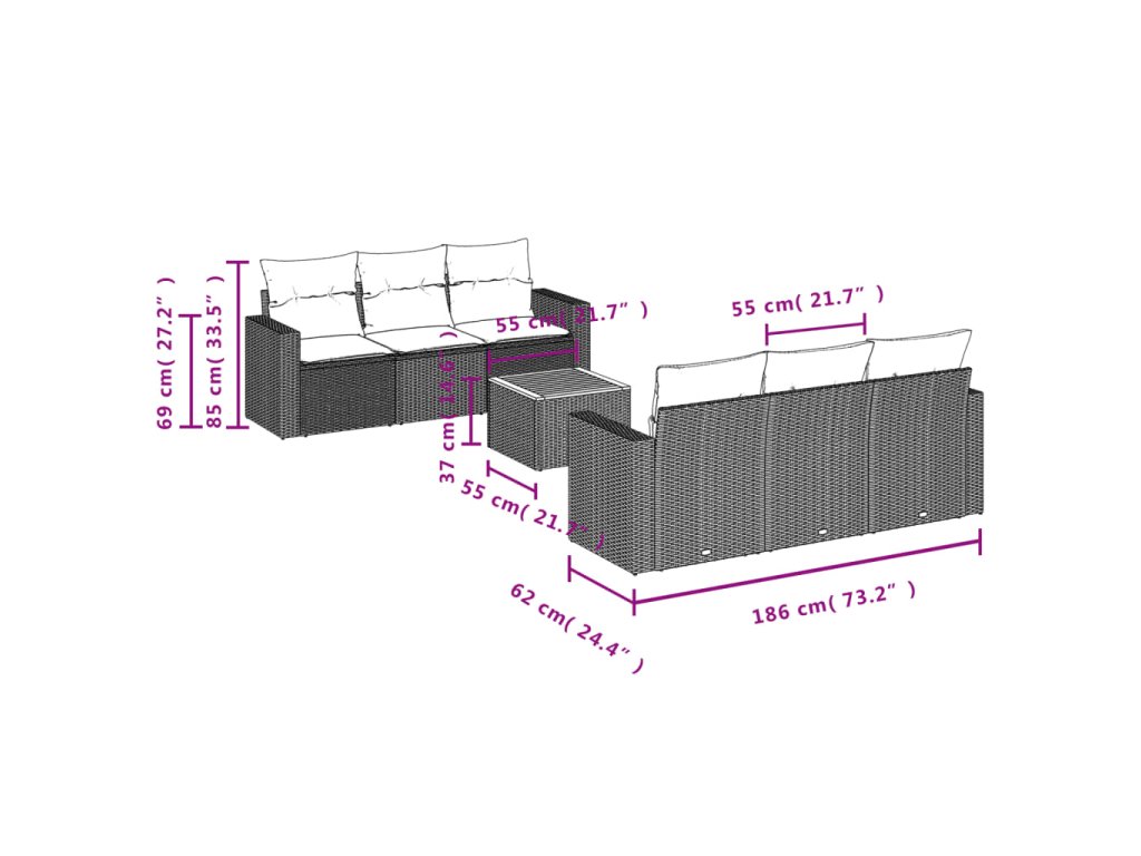 Tato zahradní sedací souprava je dokonalým doplňkem vaší zahrady, terasy nebo dvorku a poskytne vám pohodlné a příjemné místo, kde si můžete povídat s rodinou a přáteli nebo jen tak odpočívat a užívat si pobyt venku.