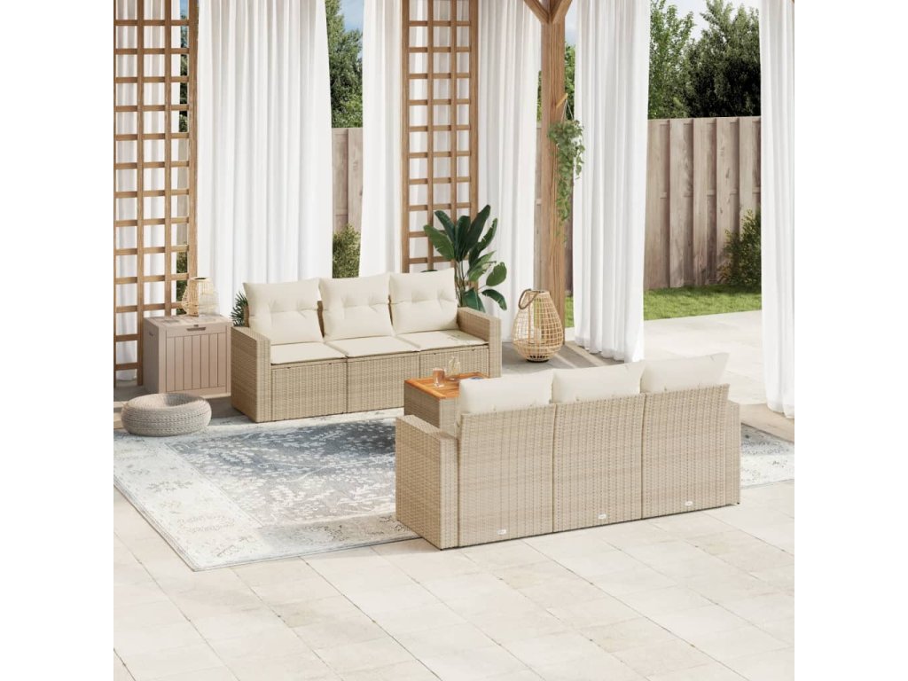 7dílná zahradní sedací souprava s poduškami béžová polyratan 3224014